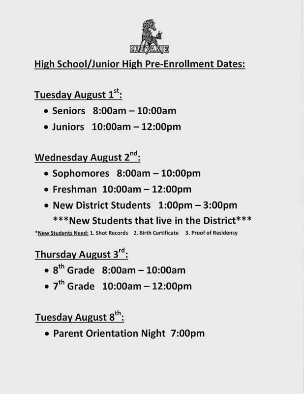 Pre-Enrollment Dates for HS & JH